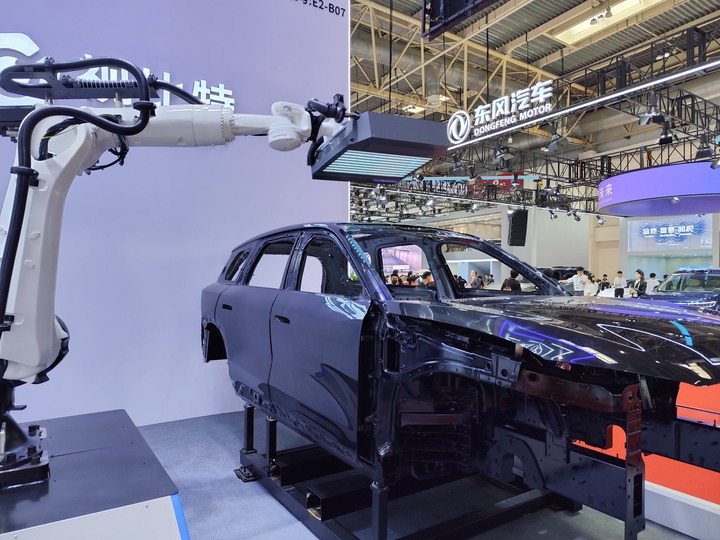 在湖南视比特机器人有限公司展台,机器在进行汽车漆面缺陷检测。新华社记者 金地 摄