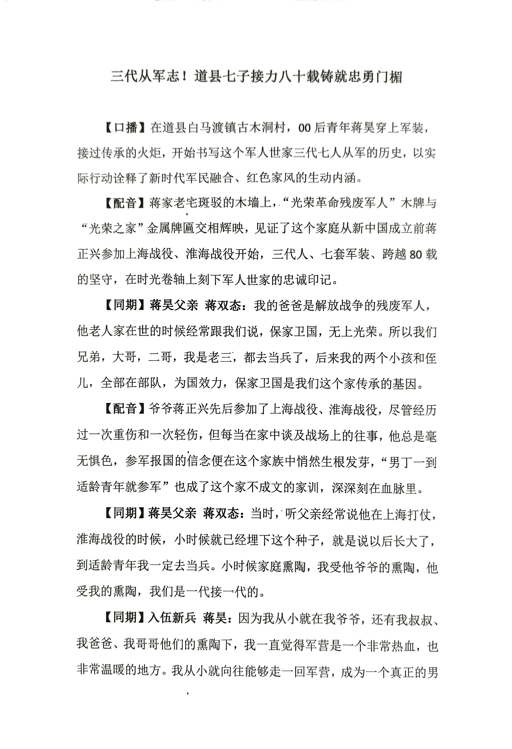 1.作品名称:《三代从军志!道县七子接力八十载铸就忠勇门楣》