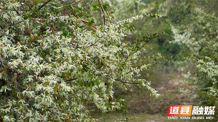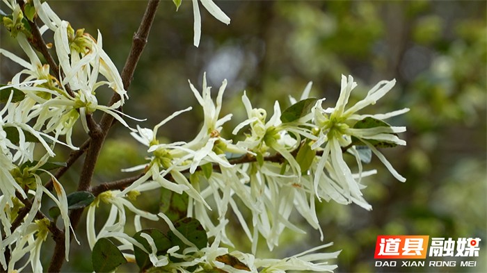 穿行山间,随处可见一树树白檵木竞相绽放。这边山坡上,花团锦簇如积雪压枝;那边山坳里,成片花海连绵起伏,目之所及尽是素白。细长的花瓣如银丝垂挂,在春风中轻轻摇曳,淡淡花香弥漫山野。置身其中,仿佛走进了一个银装素裹的世界。相比桃李的艳丽,这漫山遍野的檵木花以素净之姿,将道州春色装点得格外清新淡雅。