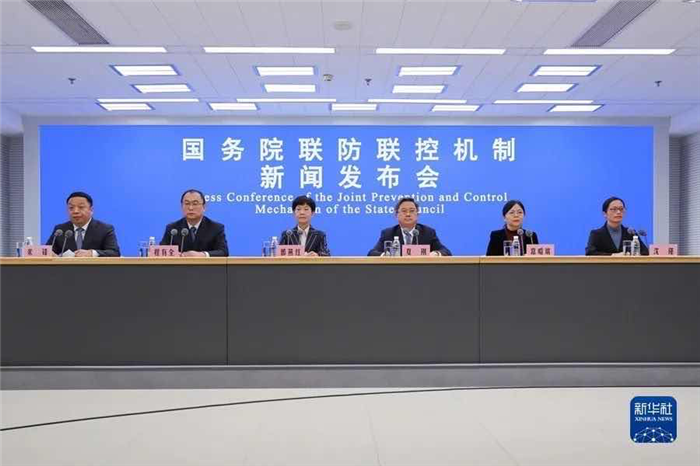 11月29日,国务院联防联控机制举行新闻发布会,新闻发言人都没有戴口罩。(图片来源:新华社)
